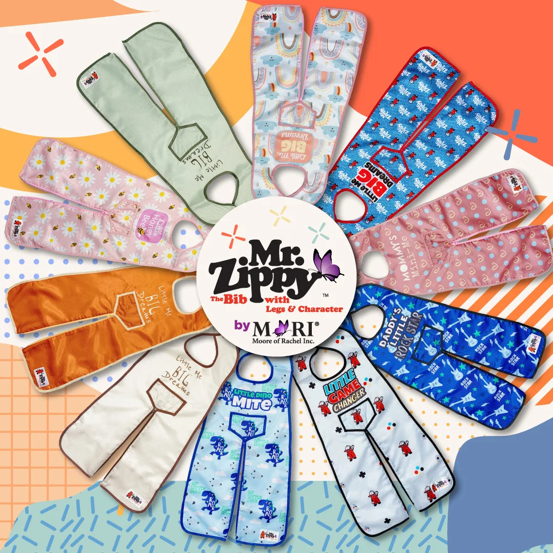 Your Toddler loves to move. Mr. Zippy Bib with legs moves with them.