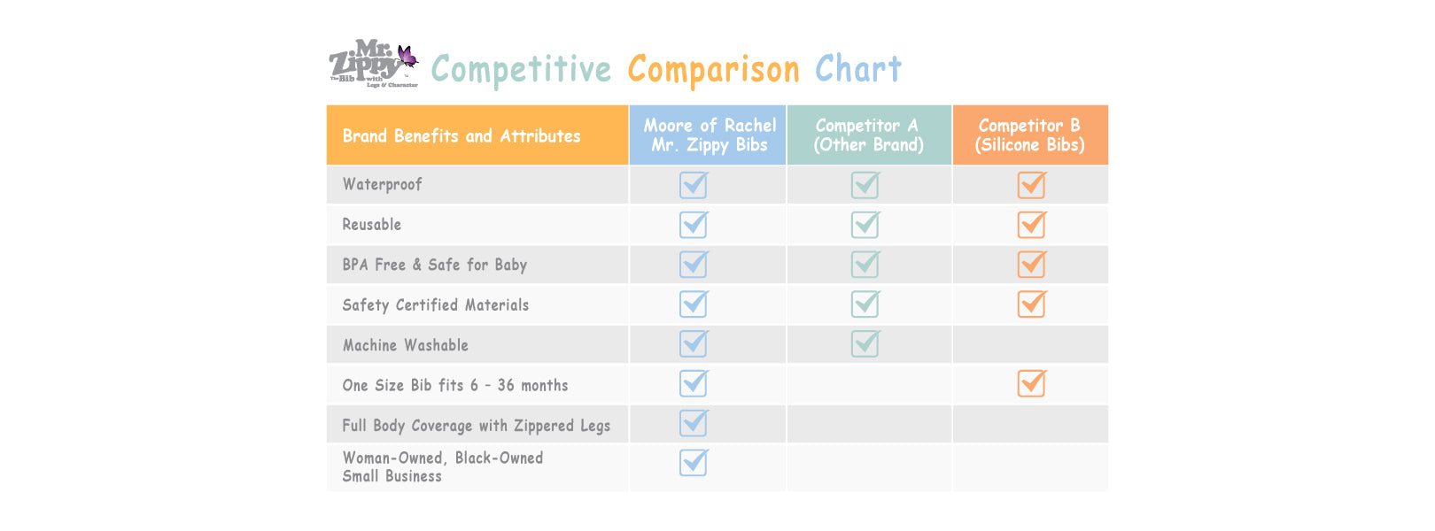 - A bib that grows with your child from 6 months to 36 months (One Mr. Zippy bib can replace all other feeding bibs)